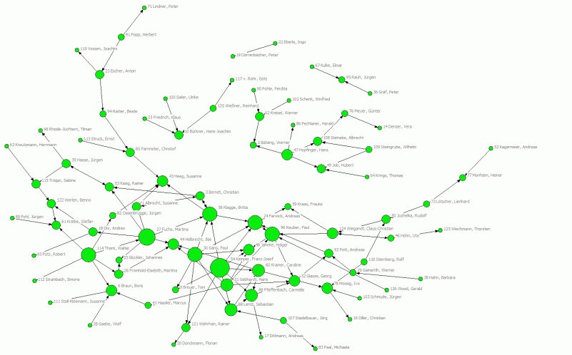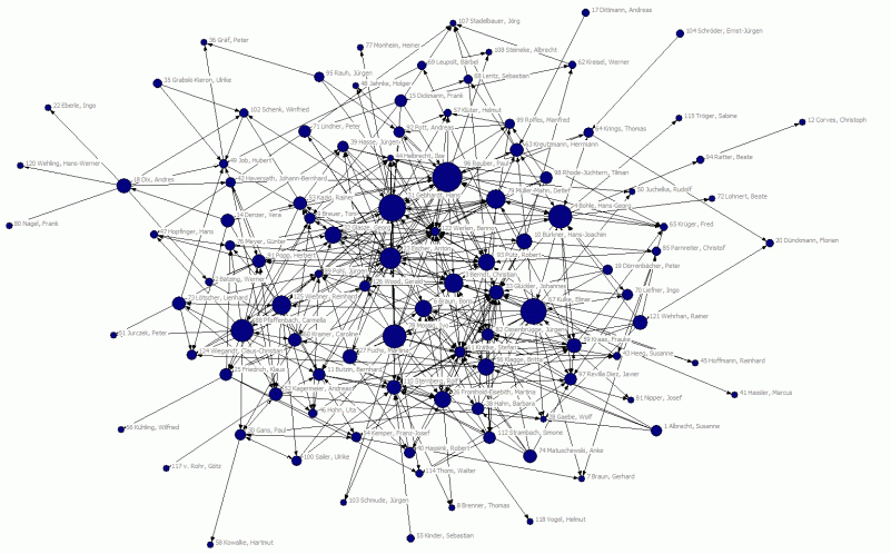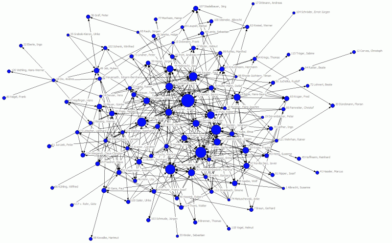 Abb. 1: Zitationsnetzwerk der deutschen Humangeographieprofessoren