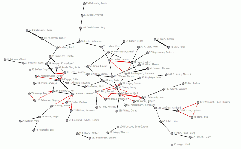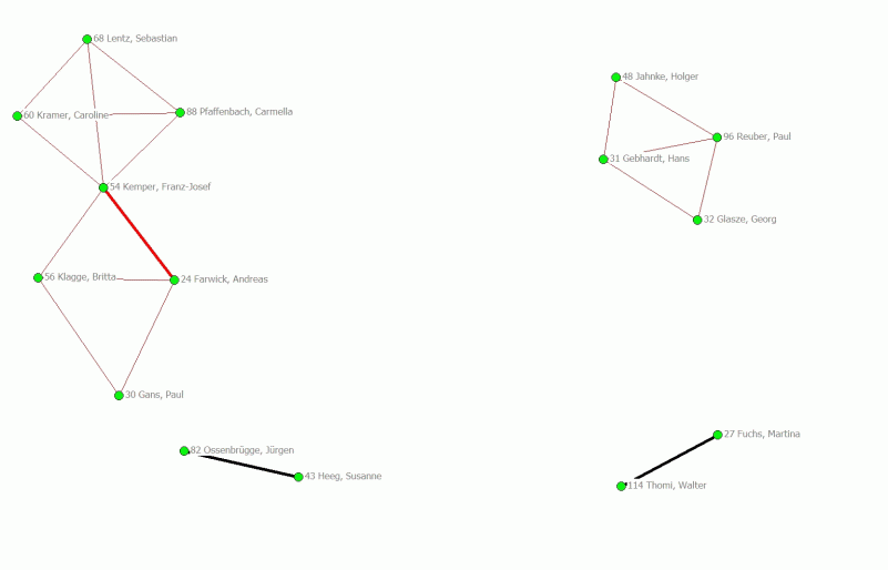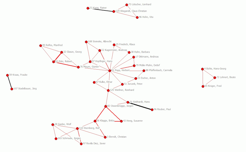 Abb. 15: Cliquen und ‚starke Dyaden' im Netz der Geographentage