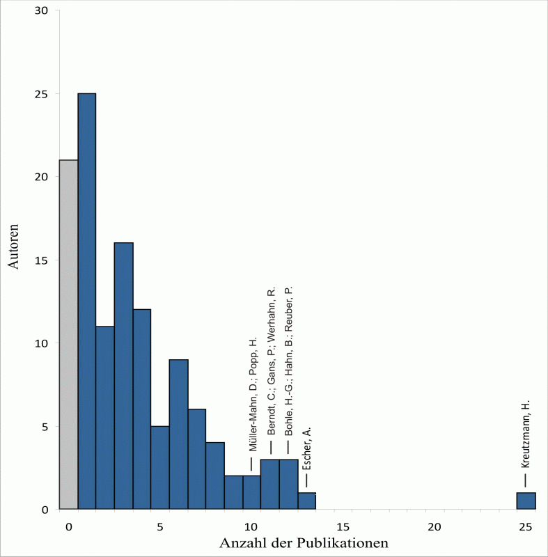 (40) Dieser hohe Wert erklärt sich aus der ausgesprochen regen Publikationstätigkeit Kreutzmanns in der Geographischen Rundschau.