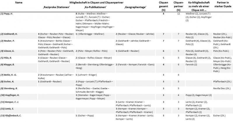 2.2.3.1 Cliquen und starke Dyaden im ‚Zitationsnetz'